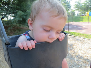 Since the weather was so nice again this morning, we decided to get out early and enjoy our time at the park. It is so hard to keep Emma away from the swings, even if one of them is broken. As soon as she gets in the swing, it's like all her worries just drift away. She is so at peace in the swing. I can only imagine what she is thinking about. And most of the time when Mason gets in the swing, he falls asleep.