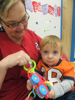 Emma was so nice and brought Mason toys to play with on the mat.